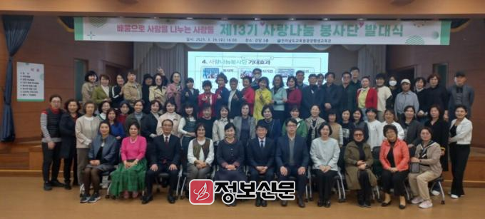 평생학습을 통해 습득한 재능을 지역사회에 봉사활동으로 환원하기 위해 2013년에 발족한 사랑나눔봉사단은 올해도 강사와 수강생 등 120여명의 봉사단이 구성됐다.