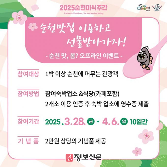 ![]() 순천시, “순천맛집 이용하고 선물 받아가자!” 이벤트 진행 |