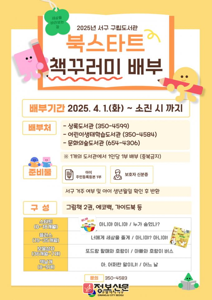 ![]() 광주시 서구, 북스타트 책꾸러미 무료 배부 사업 추진 |