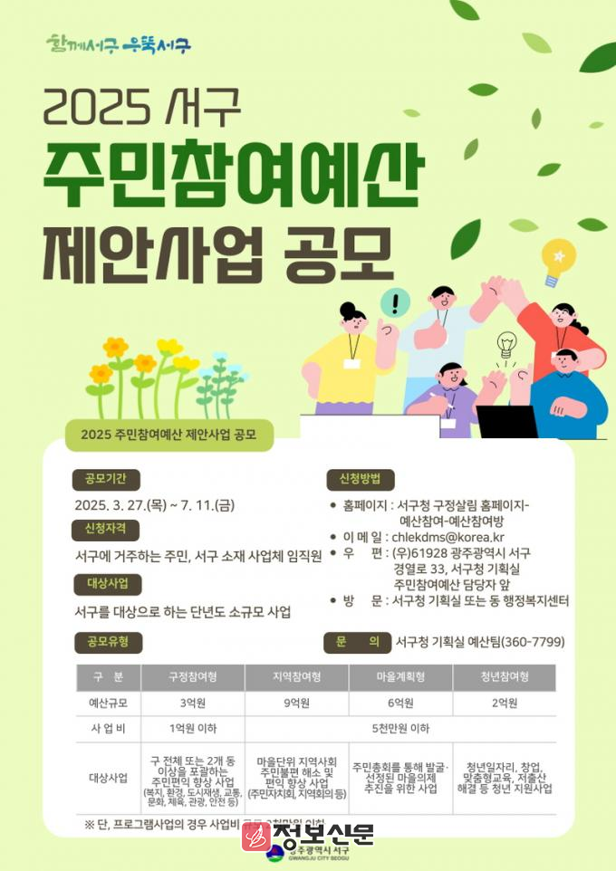 ![]() 광주시 서구, 2026년 주민참여예산 공모 돌입 |