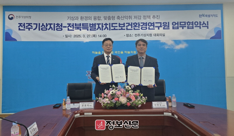 신언성 전주기상지청장 또한 “이번 업무협약으로 기상 데이터를 적극 활용하여 축산악취 저감을 위한 최적의 솔루션을 제공할 것”이며, “앞으로도 유관 기관과의 협력을 확대해 국민이 체감할 수 있는 환경 개선에 기여하겠다”고 말했다.