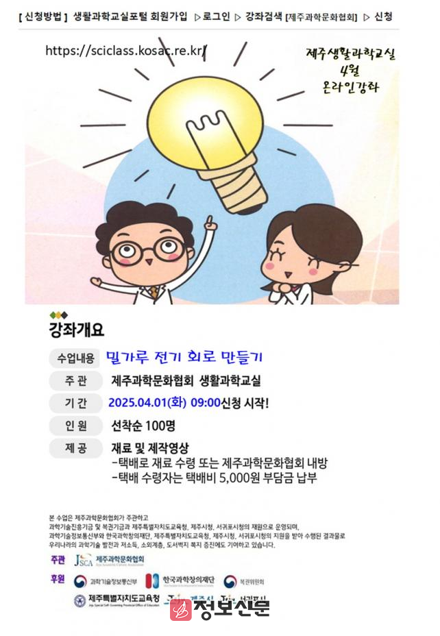 ![]() 제주과학문화협회, 2025 온라인 생활과학교실 운영 |