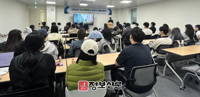 이번 설명회에서는 전남개발공사의 인재상, 비전과 목표, 근무환경 등 다양한 취업정보를 제공했으며, 취업을 준비하는 학생들을 대상으로 채용 절차, 직무별 핵심역량, 자격요건, 서류 준비 방법 등을 상세히 안내했다.