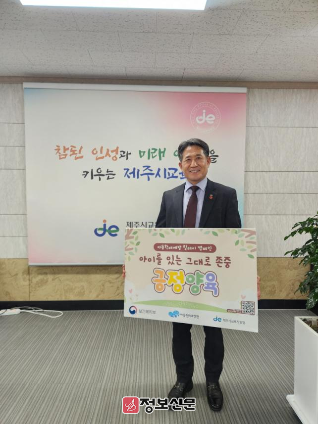 ![]() 강승민 제주시교육지원청 교육장, 아동학대예방 릴레이 캠페인 참여 |