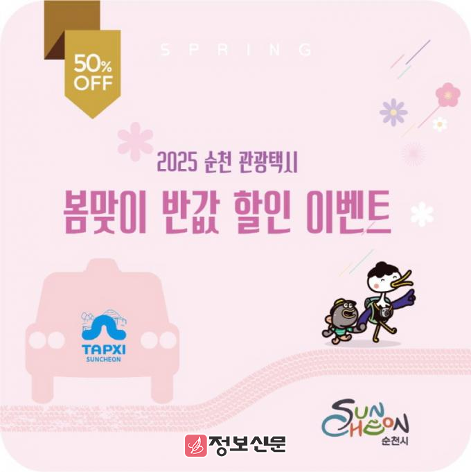 ![]() 순천시, 관광택시 봄맞이 반값 할인 이벤트 실시 |