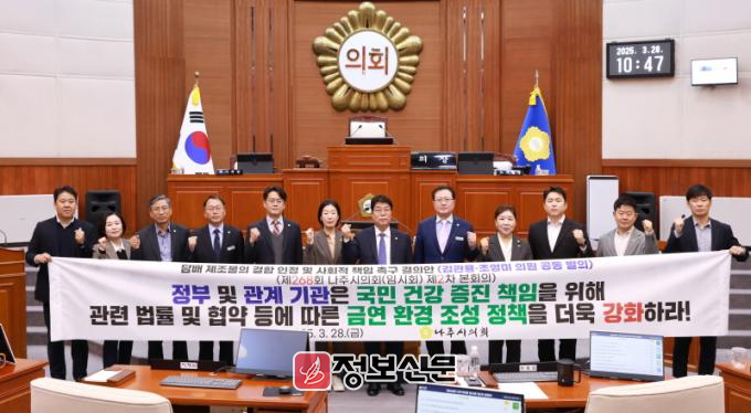 ![]() 나주시의회, 담배 제조물의 결함 인정 및 사회적 책임 촉구 결의안 채택 |