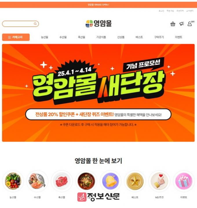 영암몰은 이번 새단장을 기념해 4/1~14일 2주간 전 품목 20% 할인 판매를 실시한다.