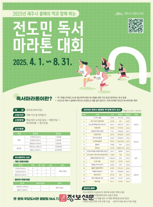 대회 종료 후 독서마라톤 완주자 독서일지를 심사하여 우수 완주자에게는 오는 10월‘2025 제주독서대전’개막식 중 개인, 동아리 부문별 제주시장상을 시상할 예정이다.