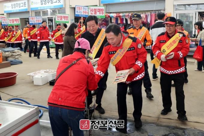 산불전문 예방진화대원 등 36명을 투입해 주요지역을 순찰하고 있으며, 행락객·입산객이 많은 주말에는 하루 107명의 직원을 산림연접지, 등산로 입구 등 집중 배치해 공백 없는 예찰 활동을 펼치고 있다. 각 읍ˑ면에서는 읍면장이 주말에도 상주하며 산불 예방 활동과 대응 태세를 직접 확인하고 있으며, 하루 4회 이상 마을방송을 실시하는 한편, 경로당을 방문해 산불예방 서명운동을 벌이며 주민들의 자발적인 참여를 유도하고 있다.