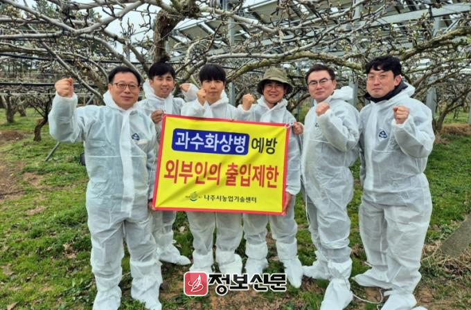나주시는 올해 5억3천만원을 투입해 과수화상병 사전방제를 위한 약제 3종을 2168농가(1658ha)에 지원했다.