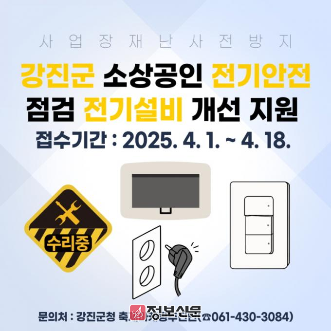 ![]() 강진군, 2025년 소상공인 점포 전기안전 점검 및 시설개선 지원사업 추진 |