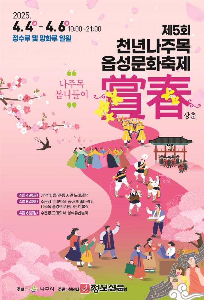 김준정 추진위원장은 “벚꽃이 가득한 봄날에 제5회 천년나주목읍성문화축제에서 가족과 연인, 친구들과 함께 오직 나주에서만 경험할 수 있는 특별한 추억을 만들어가길 바란다”고 말했다.