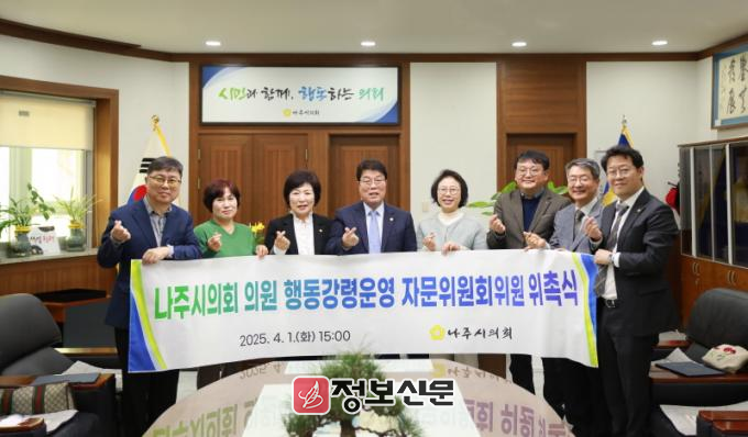 의원 행동강령운영 자문위원회는 「나주시의회 의원 행동강령 조례」 제6조에 따라, 나주시의회 의원들의 행동강령 위반행위가 발생했을 시 신고·접수 및 조사·처리에 관한 사항 등 자문을 제공하는 역할을 한다. 이번에 출범한 자문위원회는 위촉직 위원 7명으로 구성되며 임기는 3년이다.