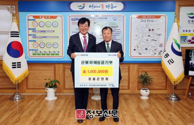 주재용 장흥군민회장은 “산불피해로 어려움을 겪고 있는 지역주민들에게 조금이나마 힘이 되고 싶다.”며 “하루빨리 피해 복구가 이루어져 주민들이 일상으로 돌아갈 수 있기를 바란다”고 전했다.