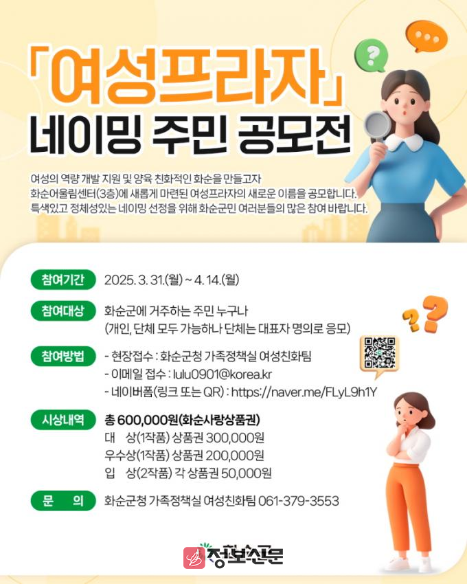![]() 화순군, 여성프라자 새로운 명칭 공모 |