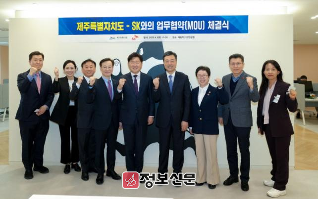 제주도는 1일 오후 3시 서울 대한상공회의소에서 SK수펙스추구협의회 SV위원회와 ‘사회적 가치 창출 및 지속가능한 지역 발전을 위한 업무협약(MOU)’을 체결했다.