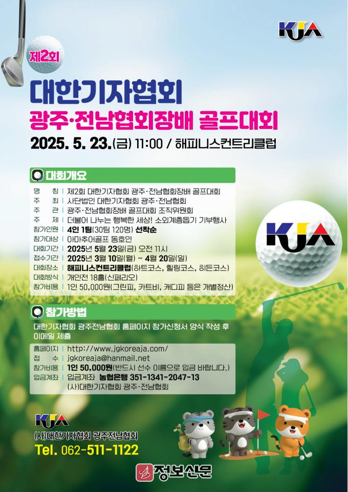 홍유길 골프대회 조직위원장은 “‘더불어 나누는 행복한 세상! 소외계층 돕기’라는 슬로건으로 모두가 함께 즐기는 생활 스포츠로서 골프 동호인의 친선 및 화합의 장과 더 나아가 소외계층 가정들이 더 나은 미래를 열어가도록 지원코자 ‘2025년 제2회 대한기자협회 광주·전남협회장배 골프대회’를 기획했다”며 “앞으로도 골프 동호인들의 건강한 스포츠 생활을 응원하기 위한 다양한 행사를 진행할 예정이다”라고 말했다.