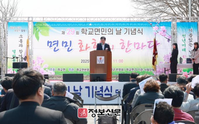 임채문 학교면 번영회장은 “오늘 면민의 날 행사에 참석해 주신 모든 분께 진심으로 감사드린다”며 “이번 행사로 서로 돕고 성장하는 공동체가 되어 학교면민의 화합과 발전의 계기가 되길 바란다”고 전했다.