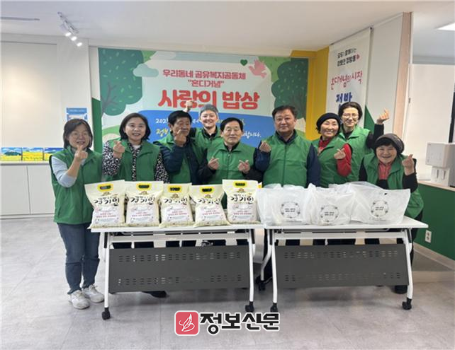 정방동에서는 마을공유공간 운영단 내 마을돌봄분과(8명)를 통해 3월부터 매월 마지막 주 토요일 “사랑의 밥상”을 운영하여 정방동 내 취약계층 30명에 식사 및 물품(반찬 등)을 지원하고 있으며, 앞으로 지역 내 봉사단체 등과 연계한 마을 돌봄 활동도 추진할 계획이다.