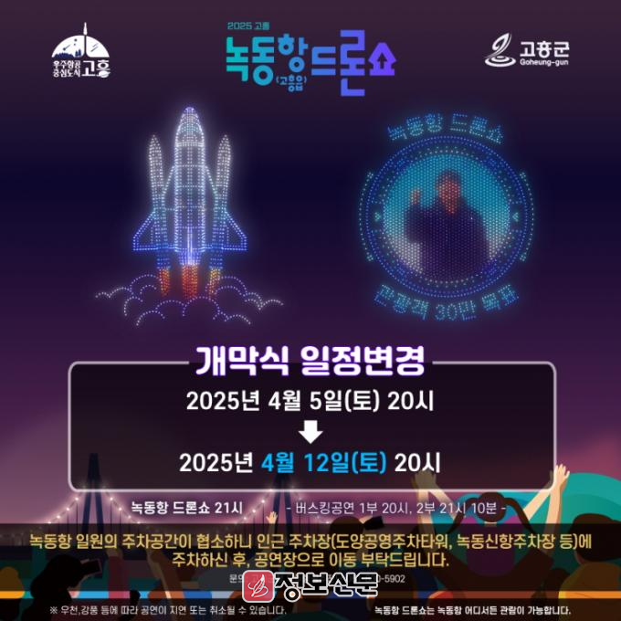 ![]() 고흥군, 녹동항 드론쇼 개막식 4월 12일로 연기 |