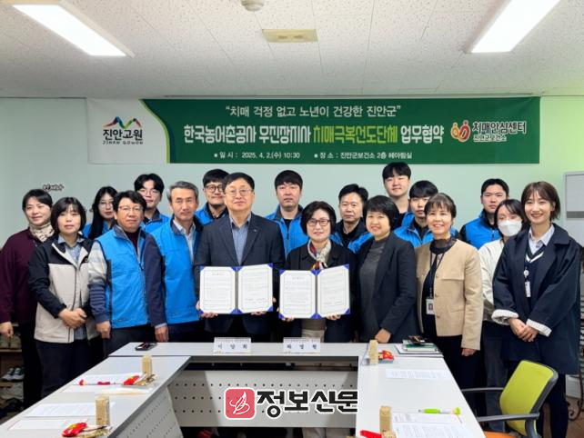 진안군은 2일 진안군치매안심센터 헤아림실에서 한국농어촌공사 무진장지사와 ‘치매안심사업 업무협약’을 체결했다고 밝혔다.