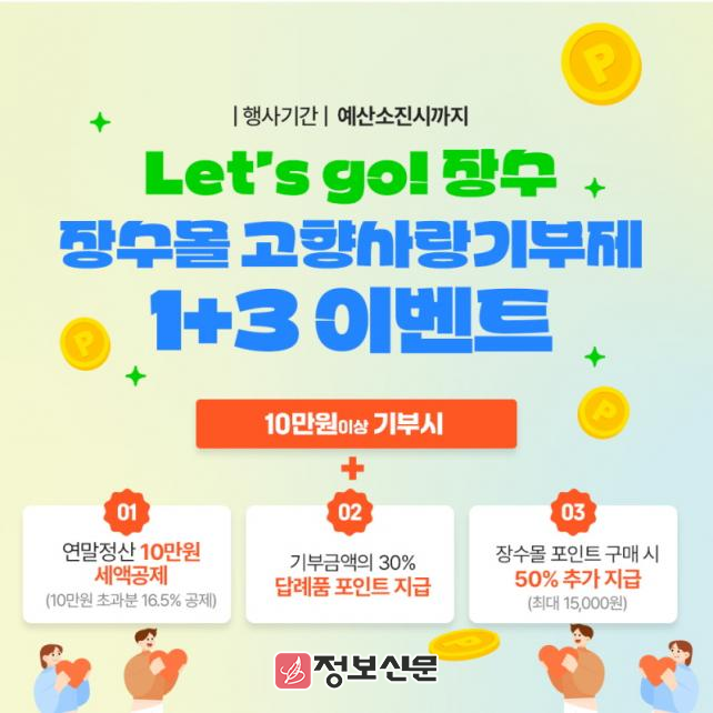 이번 행사는 2025년 연초 기부자를 포함해 선착순 200명을 대상으로 하며 장수몰 포인트를 최대 1만 5천원까지 추가 적립해 주는 이벤트다.
