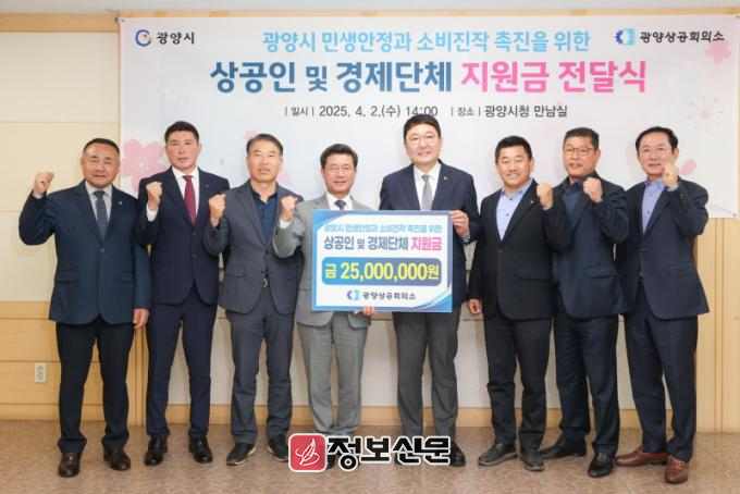 지원금은 총 2천 5백만 원 규모이며, 소비 촉진과 지역 경제 활성화를 위해 ▲광양상공인회 ▲광양만상공인회 ▲동광양상공인회 ▲광영상공인연합회 ▲광양경제활성화운동본부에 각각 5백만 원이 전달됐다.