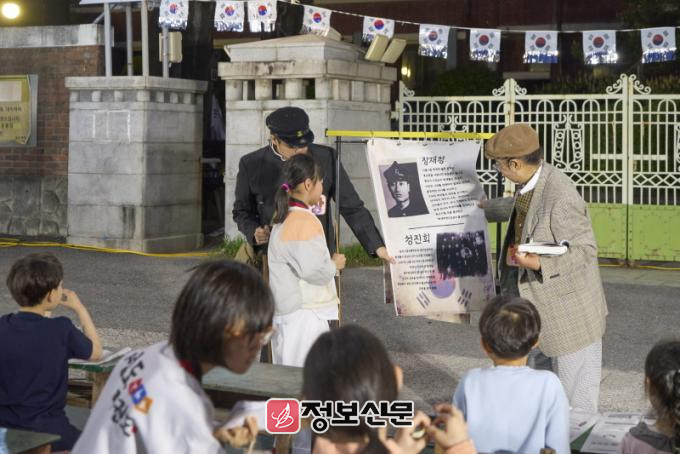 차(茶)를 마시며 역사 속 광주 여성들을 만날 수 있는 관객 참여형 연극 ’카페 동인(東人)’은 누구나 관람할 수 있다. 야행 기간 중 개방하는 서석초등학교 체육관(국가등록유산)에서 진행돼 근대 학교의 정취를 느낄 수 있다.
