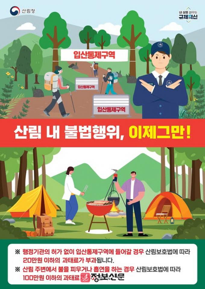 주요 단속 대상은 산나물, 산약초 등 임산물을 산림 소유자의 동의 없이 채취하는 행위로, 불법 채취는 엄격히 처벌될 예정이다. 또한, 산불 예방을 위해 산림 내 담배를 피우거나 화기를 소지하는 행위도 단속 대상에 포함된다.