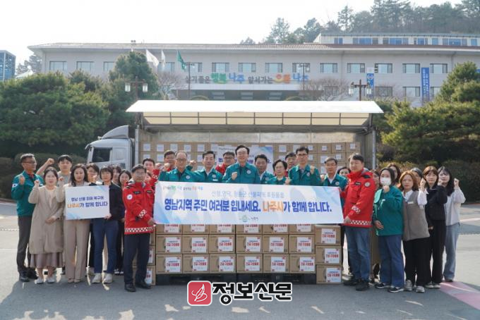 ![]() 나주시가 영남 산불 피해지역 이재민들을 위해 구호 물품을 전달했다. (사진제공-나주시) |