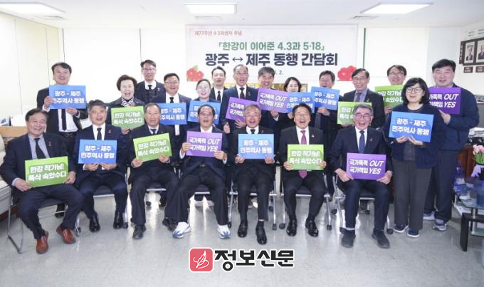 이틀 일정으로 제주를 방문한 강기정 시장은 첫날인 2일 제주4·3평화기념관 유족회 사무실에서 ‘한강이 이어준 4·3과 5·18 광주↔제주 동행 간담회’를 열어 ‘평화연대 방안’을 논의했다.