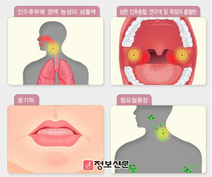 2급 법정감염병인 성홍열은 주로 5~15세에서 발생하는 세균성 호흡기감염병으로, 환자의 호흡기 분비물과 손이나 물건을 통한 접촉으로 전파된다. 목의 통증과 함께 고열, 두통, 구토증상을 나타내며 12~48시간 후에는 목이나 겨드랑이, 사타구니 등에서 시작한 전신발진을 보일 수 있다. 또 목젖 위에 출혈반점과 혀의 유두부위가 부어 딸기모양이 되는 것이 특징이다.