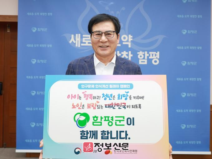 함평군은 4일 “이상익 함평군수 지난 2일 심민섭 장성군 의회의장의 ‘인구문제 인식개선 릴레이 캠페인’ 지목을 받아 3일 캠페인에 동참했다”고 밝혔다.