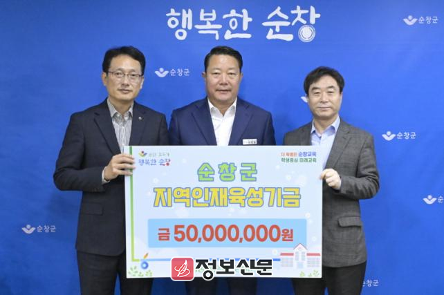 순창군청 군수실에서 열린 이날 전달식에는 최영일 순창군수를 비롯해 신종철 NH농협은행 순창군지부장과 남상길 순창교육지원청 교육장이 함께했다.