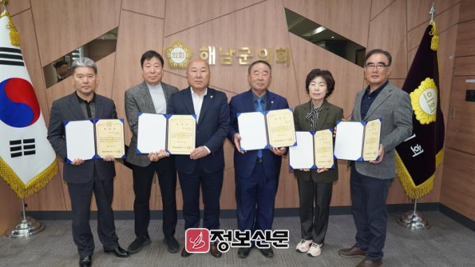 결산검사위원은 지난 제343회 임시회에서 선임되었으며 해남군의회 박종부 의원을 대표위원으로 총 5명의 결산검사위원에게 위촉장을 수여하였다.