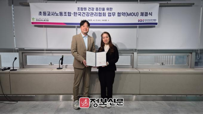 ![]() KH한국건강관리협회 정준원 전략사업본부장(왼쪽)과 초등교사노동조합 정수경 위원장(오른쪽) |