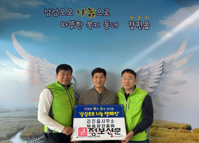‘삼삼오오 나눔 릴레이’는 강진읍 지역사회보장협의체에서 주관 중인 프로그램으로 주민들이 자발적으로 기부하고, 기부자는 또 다른 기부자를 추천하는 방식으로 나눔의 선순환을 만들어 가는 지역사회의 대표적인 캠페인이다. 강진읍은 앞으로도 삼삼오오 나눔 릴레이를 통해 기부 문화의 확산을 계속 이어 나갈 예정이다.
