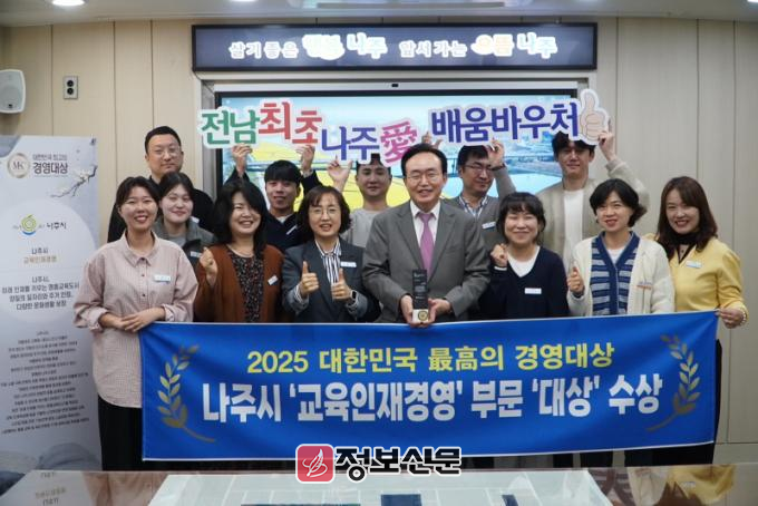 나주시(시장 윤병태)는 지난 3일 서울 중구 더 플라자 호텔에서 열린 ‘2025 대한민국 최고의 경영대상’에서 ‘교육인재경영’ 부문 대상을 수상했다고 4일 밝혔다.