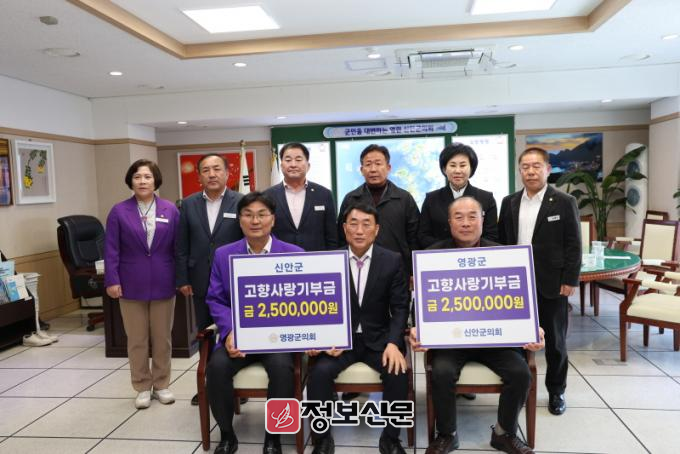 김강헌 의장은 “고향사랑기부금 상호 기부를 통해 영광군의회와 신안군의회가 따뜻한 마음을 나누고, 지역 간 상생의 가치를 함께 실현해 나갈 수 있어 매우 뜻깊게 생각한다”며, “앞으로도 지속적인 교류를 이어가며 서로의 발전을 응원하고, 주민의 삶의 질 향상을 위해 함께 힘을 모아가길 기대한다”고 말했다.