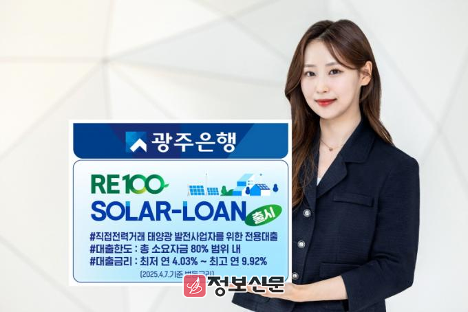 ![]() 광주은행, 직접전력거래 태양광 발전사업자 전용대출 ‘RE100 SOLAR-LOAN’ 출시 |