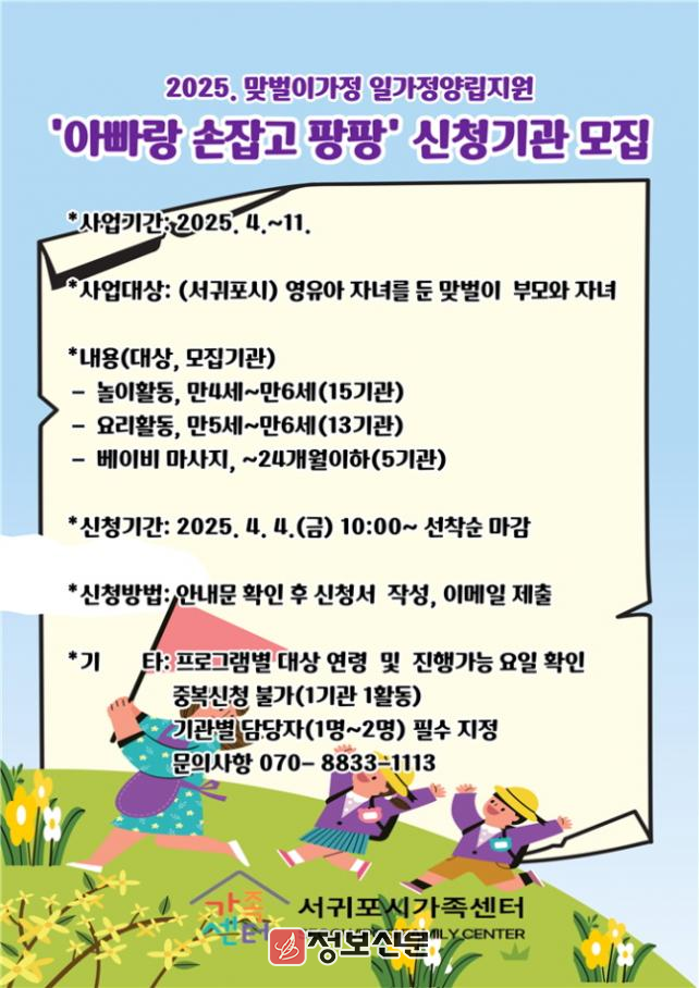 ![]() 서귀포시, 맞벌이 가정 일가정 양립지원 아빠랑 손잡고 팡팡 운영 |