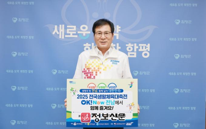 함평군은 8일 “이상익 함평군수가 ’2025 전국생활체육대축전 성공 개최 릴레이 챌린지‘에 동참하며 다음 단체장으로 김산 무안군수와 정인화 광양시장을 지목했다”고 밝혔다.