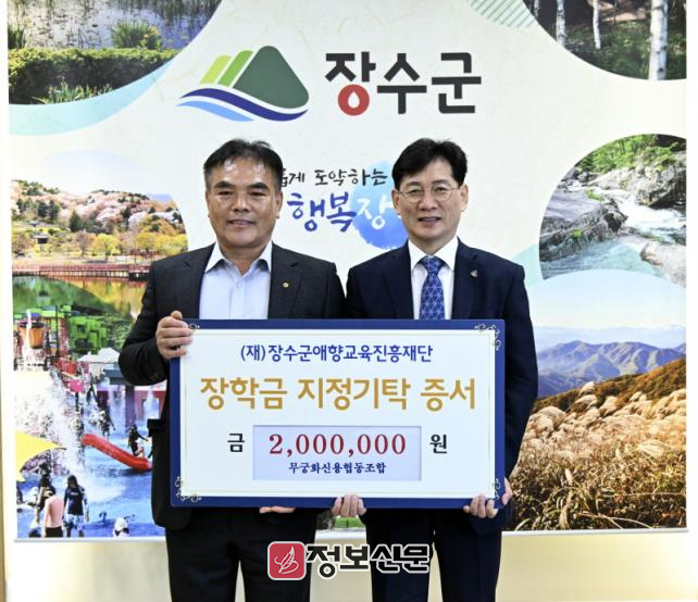 ![]() 장수군 장계 무궁화신용협동조합, (재)장수군애향교육진흥재단에 장학금 기탁 |