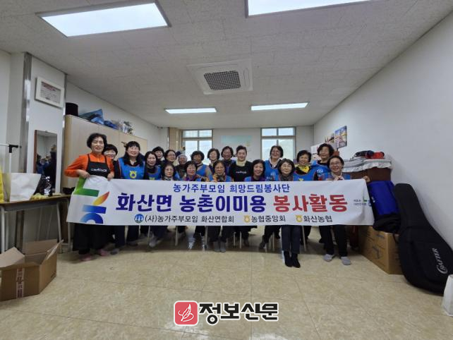 화산농협 농가주부모임은 매년 지역의 이웃을 돕고자 다양한 봉사활동을 진행하고 있으며, 특히 어르신 염색봉사는 농가주부모임이 창단되면서부터 지금까지 쉬지 않고 진행하고 있다.