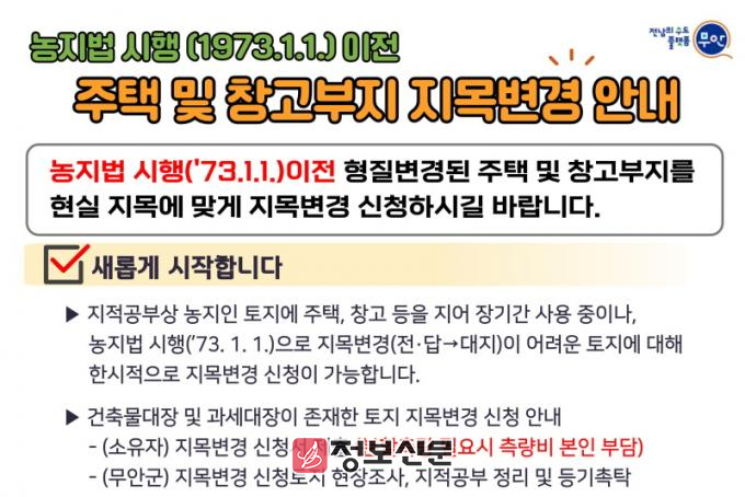 ![]() 무안군, 1973년 이전 주택 및 창고 용지 지목변경 추진 |