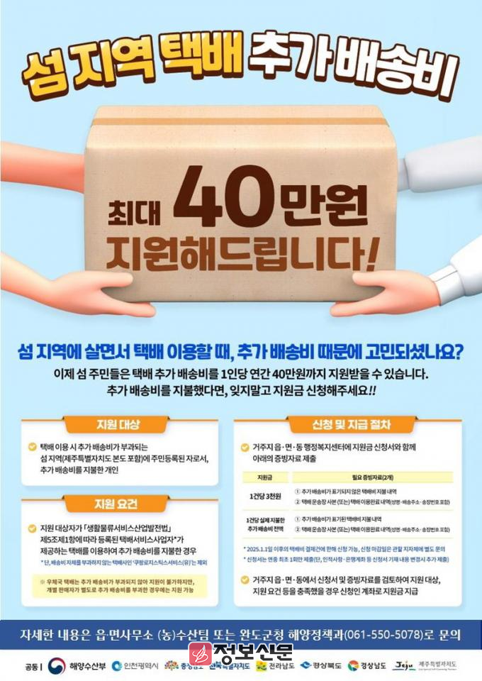 사업은 육지보다 비싼 섬 지역 택배비에 대한 주민들의 부담을 덜어주고자 추진되며, 12월 19일(예산 소진 시 종료)까지 시행한다. 지난해까지 도서 지역만 지원 가능했으나 올해부터는 연륙 도서 지역까지도 지원된다.