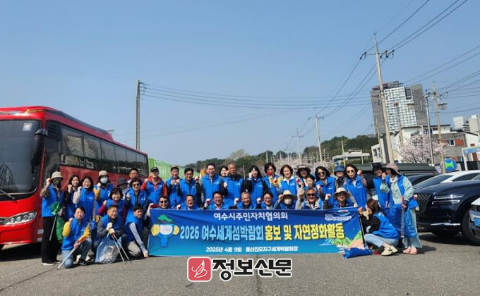 ![]() 여수시 주민자치협의회(회장 서선기)가 지난 9일 봄을 맞아 2026여수세계섬박람회 홍보와 거리 정화 활동에 나섰다. |