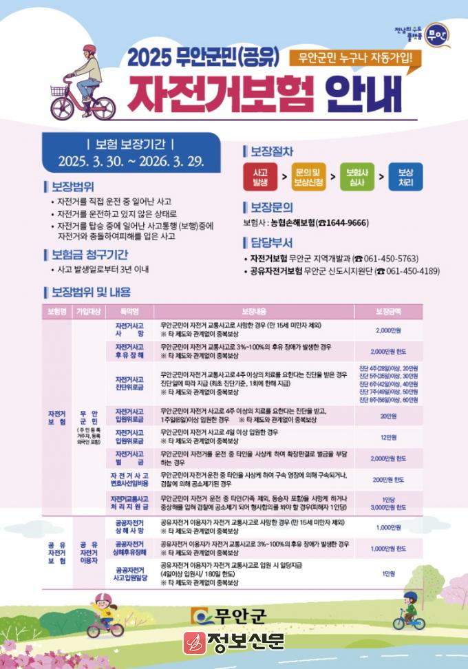 ![]() 무안군, 전 군민 (공유)자전거 보험 가입 |