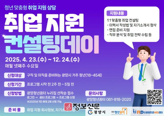 ![]() 광양청년꿈터, 청년 대상 '취업 지원 컨설팅 데이' 운영 |