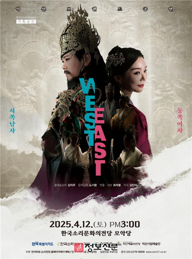 전북자치도는 오는 4월 12일 오후 3시, 한국소리문화의전당 모악당에서 익산시립예술단의 창작 브랜드 공연 ‘웨스트 & 이스트(West & East) - 서쪽남자 & 동쪽여자’를 초청해 선보인다고 밝혔다.